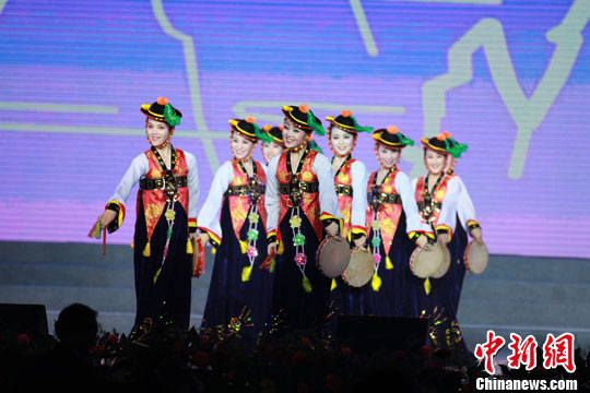 10月10日晚,朝鲜国立民族艺术团在丹东献艺。中新社发 司晓帅 摄