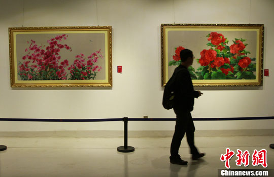 10月10日,120幅朝鲜美术画作在丹东展出。中新社发 司晓帅 摄