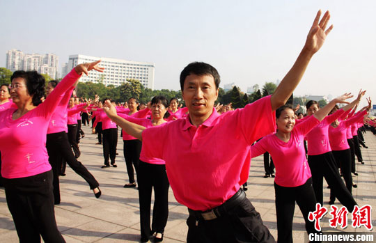 10月11日,全国首届原创广场舞大会演在湖南株洲市神农广场开幕。唐小晴 摄