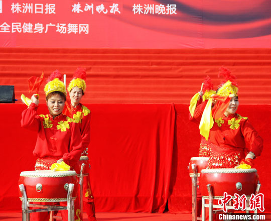 10月11日,全国首届原创广场舞大会演在湖南株洲市神农广场开幕。唐小晴 摄