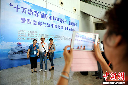 10月11日,以“穿越海峡 乐行两岸”为主题的“十万游客国际邮轮两岸行”主题活动在厦门国际邮轮中心正式启动。首发团1200多名游客乘坐丽星邮轮“双子星号”开展为期4天的环海峡邮轮旅游。中新社发 王东明 摄
