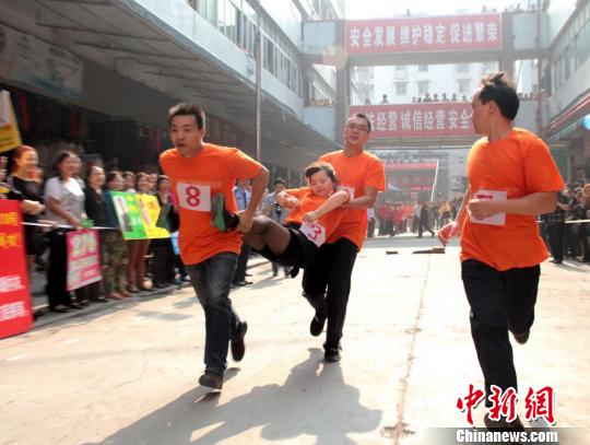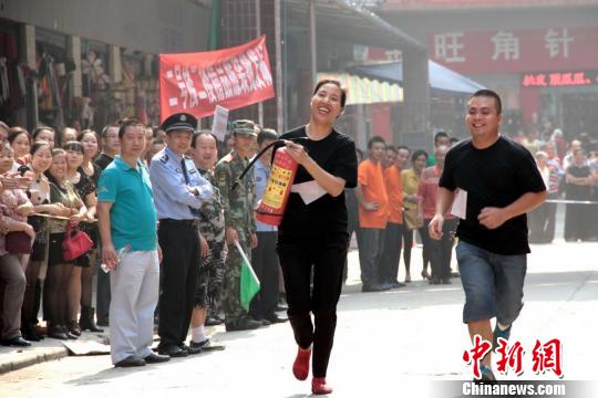 四川南充商家举行趣味消防运动会“比拼”技能