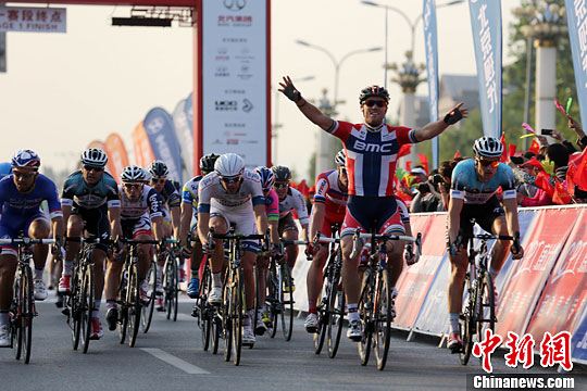当日,BMC车队的胡舒福德夺得2013环北京职业公路自行车赛首日赛段冠军。