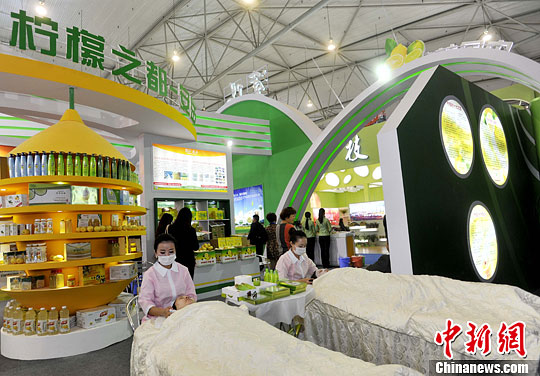 10月22日,第十四届中国西部国际博览会2013四川农业博览会在成都举行开馆仪式。图为四川农业博览会展区现美容体验推荐农产品。中新社发 安源 摄