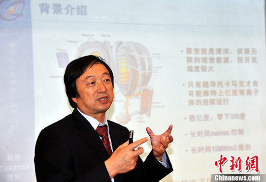 10月24日,中国科学院合肥物质科学研究院副院长、中科院等离子体物理研究所所长李建刚研究员,向媒体介绍全超导托卡马克实验装置(即东方超环,EAST)建设发展相关情况。中新社发 孙自法 摄