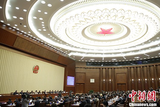 10月25日,十二届全国人大常委会第五次会议在北京人民大会堂闭幕,全国人大常委会委员长张德江主持会议。会议表决通过了全国人大常委会关于修改中华人民共和国消费者权益保护法的决定等各项议案。中新社发 盛佳鹏 摄