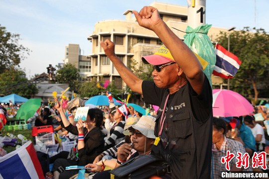 11月10日,由泰民主党主导的反“特赦条例”抗议示威活动进入第11天,曼谷民主纪念碑等地的抗议示威活动尚无退温迹象。图为在民主纪念碑活动现场示威的民众。中新社发 余显伦 摄