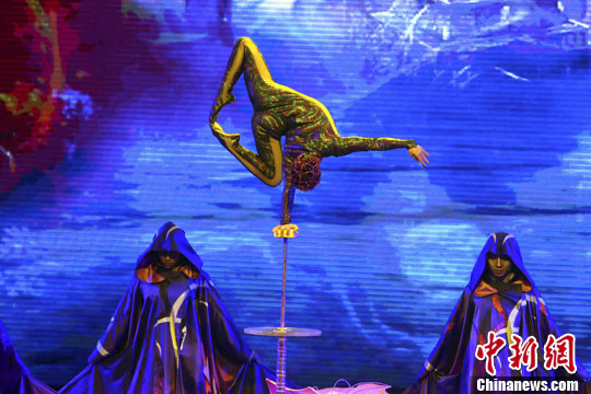 12月12日晚,北京举办“相聚北京——2013中外朋友迎新年专场演出”。图为杂技表演。中新社发 李慧思 摄