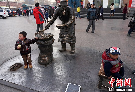近日,原本生动的《热冬果》雕塑仅剩下老人孤零零的站立在瑟瑟的冬风中,一旁那个垂涎欲滴、惹人怜爱的小男孩不翼而飞,仅剩下一个孤凄凄的底座。《热东果》雕塑是兰州西关的一大地标,是一个卖冬果梨的老爷爷和一个馋小孩,这组塑像是西北师大美术学院教授靳勒的作品,雕刻得栩栩如生。