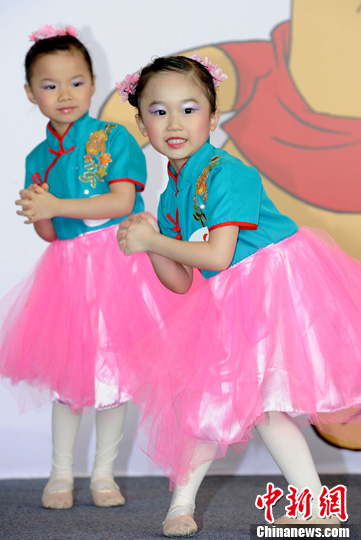 1月19日,香港小朋友身着“中西合璧”的服装,在商场表演歌舞,向现场观众“恭喜发财拜大年”。春节临近,香港街头巷尾春节气氛浓。