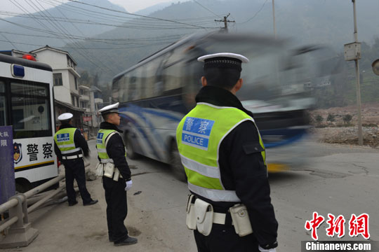 1月下旬,临近春节,四川雅安交警不分昼夜执勤,守候境内川藏线,确保春运安全。中新社发 张浪 摄