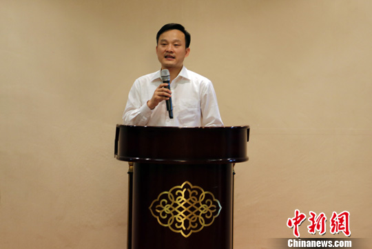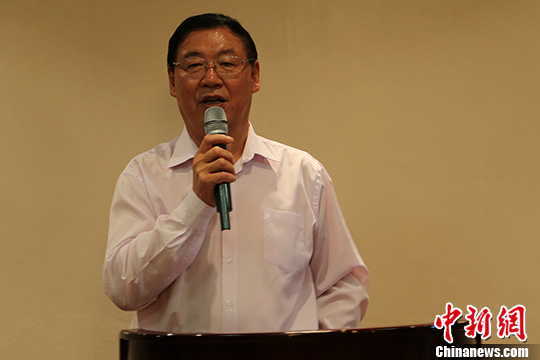 图为阎清文发表深情的告别演说。中新社发 宋方灿 摄