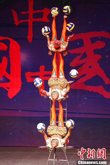 图为演出的杂技《蹬球》。中新社发 徐长安 摄