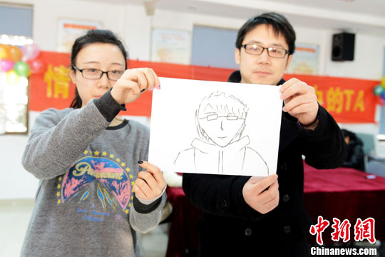 图为通过“画笔传情”配对成功的一对男女嘉宾。王思哲 摄