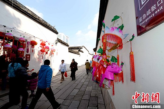 2月11日,中国传统元宵佳节临近,民间手工花灯点缀福州古街巷,增添浓浓喜庆气息。中新社发 王东明 摄