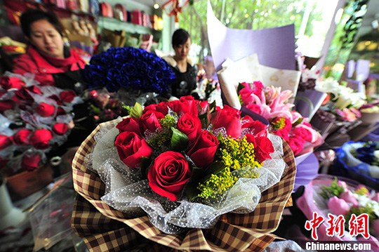 元宵节恰逢情人节 福州玫瑰花价格翻两番