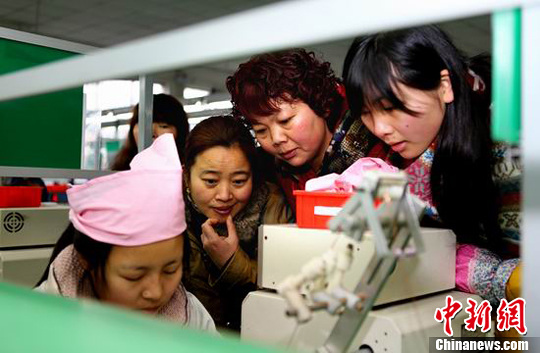 2月12日,四川省华蓥市的返乡农民工在当日该市启动的“2014春风行动暨企业用工大型招聘会”上,受当地用工企业邀请到车间现场参观拟聘岗位。邱海鹰 摄