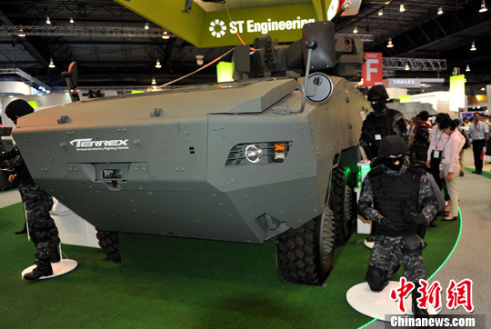 2月12日,2014新加坡航展进入第二天,东道主展区内展示的众多武器装备系统,颇引人瞩目。孙自法 摄