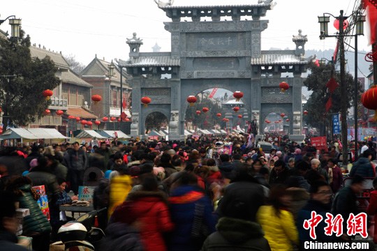 2月12日,来自四面八方的民众赶来古庙会上看社火。距今1600多年历史的河南省鹤壁浚县古庙会,生命力依旧。12日在此间开幕的中国(鹤壁)民俗文化节,官方保守估计,吸引了超过40万周边民众前来赏民俗看社火赶庙会。中新社发 王中举 摄