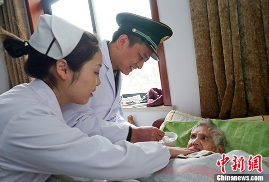 2月12日,浙江公安边防总队直属医院的医护人员为住院老人免费送上汤圆,祝福老人元宵快乐。据悉,每逢传统佳节,边防医院的官兵们都会依照传统习俗为住院治疗的病弱老人们过上一个喜庆的节日。单立新 摄