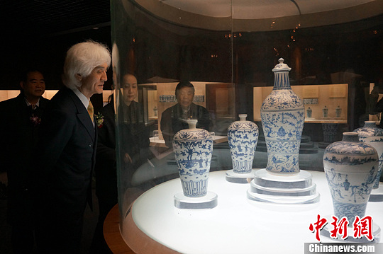 2月24日,第35次小松日中友好代表团参观桂林博物馆的“靖江藩王遗粹—桂林出土明代梅瓶陈列厅”。中新社发 欧惠兰 摄
