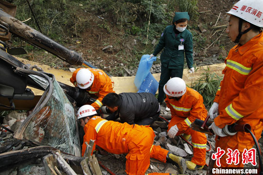 图:重庆一挖掘机翻落20米陡坡