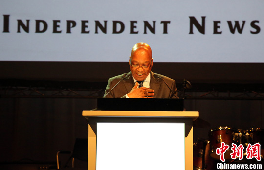 图为南非总统祖马发表主旨演讲。中新社发 宋方灿 摄