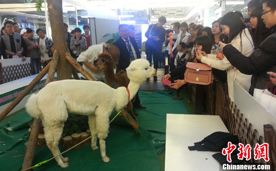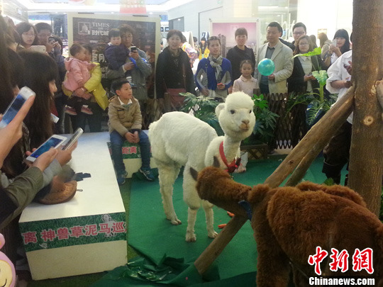 4月12日,两只可爱的羊驼现身江苏镇江一家商场内,为该市举办的“首届网友乐享生活嘉年华”活动“助阵”。大多数市民表示,知道羊驼在网络上是“名角”,但是没有在现实生活中见到过,于是纷纷争相与其合影并伸手抚摸,强势围观引发现场不小的骚动。