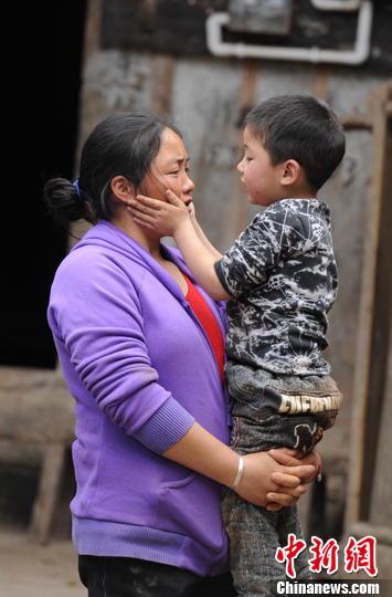 4月12日,张连香与小儿子张禾杰。中新社发 刘忠俊 摄