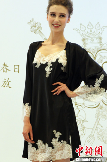 4月12日,法国经典家居服品牌CA BRIDA在北京举行主题为“梦幻春日、优雅绽放”2015家居服秀,图为模特展示CA BRIDA家居服新款作品。中新社发 钱兴强 摄