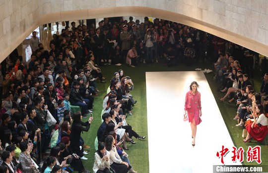 当日,正在南京德基广场上演的“旖旎之春”春夏秀场巡礼主题时装秀轮番登场,中外模特身着新款潮流春夏装,在T台上绽放摩登时尚。