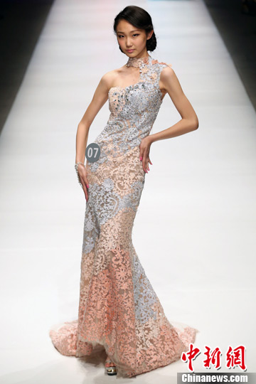 4月13日,选手在T台上展示风姿。中新社发 韩海丹 摄