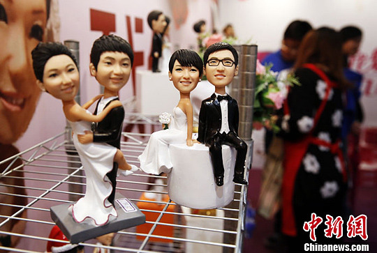 4月19日,2014春季中国婚博会上海站在世博展览馆拉开帷幕。包括礼服,摄影,婚戒,婚宴,婚庆,婚品等高性价比的一站式结婚采购服务吸引了众多准备结婚的新人前来光顾。汤彦俊 摄