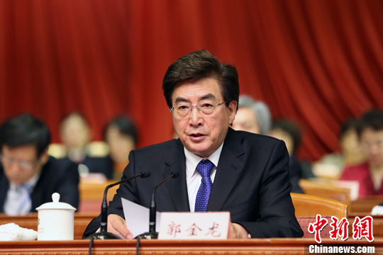 4月28日,中共中央政治局委员、北京市市委书记郭金龙在会上讲话。当日,北京市第十三次妇女代表大会在北京会议中心开幕,来自北京各行各业700余名代表出席大会。中新社发 韩海丹 摄