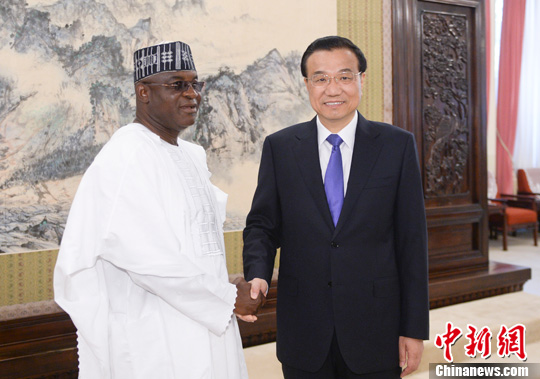 5月13日,中国国务院总理李克强在北京中南海会见尼日利亚参议长戴维·马克。中新社发 廖攀 摄