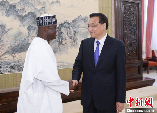 5月13日,中国国务院总理李克强在北京中南海会见尼日利亚参议长戴维·马克。中新社发 廖攀 摄