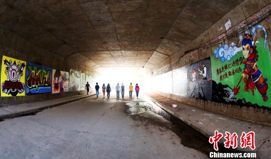 5月13日,湖南南华大学学生宿舍区与教学区的过道上到处是涂鸦创作。曹正平 摄