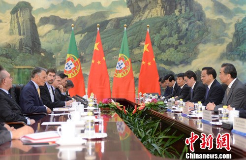 5月16日,中国国务院总理李克强在北京人民大会堂会见了葡萄牙总统席尔瓦。中新社发 廖攀 摄