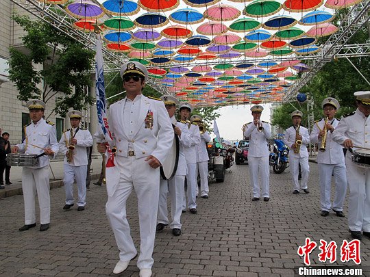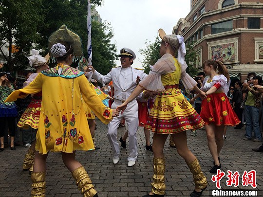 中新网哈尔滨6月10日电 (魏来)在仪仗队奏乐的欢乐气氛下,2014“迷人的哈尔滨之夏”时尚巡游活动在哈尔滨最著名的百年老街——中央大街拉开帷幕。身着印有欧陆文化特色图案服装的队伍,在具有浓厚欧陆风情的百年老街上进行巡游,引来了众多国内外游客围观。