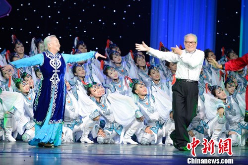 7月2日,两位八旬以上年纪的舞蹈艺术家上台舞动。当日,“舞悦内蒙古”——舞蹈精品展演在呼和浩特开演,据悉,此次演出是第十一届内蒙古草原文化节其中一场,草原文化节历时8天,将先后举办优秀剧目展演、民族电影展映、原创草原歌曲演唱会、文物精华展等11项文化活动。中新社发 刘文华 摄
