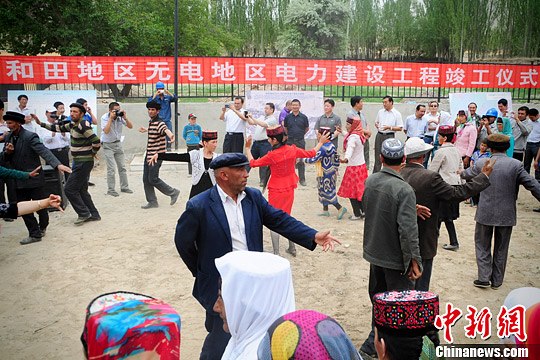 新疆和田最后一个无电村通电 村民跳舞庆祝