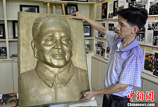 8月20日,在邓小平110周年诞辰来临之际,在湖南益阳市金花坪社区,不少市民参观姚春辉父子创办的邓小平纪念馆。2004年,宁乡县道林镇清水村农民姚寿衡、姚春辉父子在自家两间土坯房内创办了民间邓小平纪念馆。2011年,姚春辉到益阳务工,该纪念馆也搬迁至益阳市。该馆现珍藏着邓小平的精致雕塑一尊,有关邓小平的图片300多张、书籍400多种、杂志100多种、报纸100多种、邮票40多套。宁党保 摄