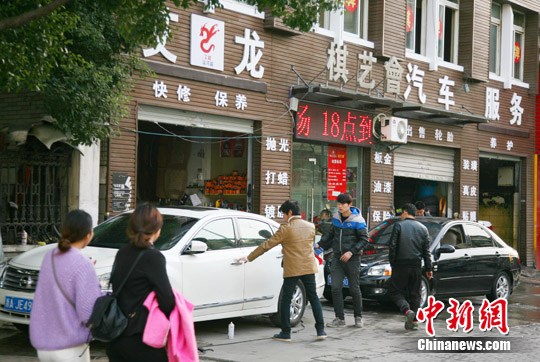 2月12日,杭州某洗车行门口不少市民开着爱车前来洗车。中新社发 李晨韵 摄