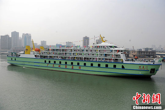 2月13日,随着双泰26、27两艘客滚轮投入运营驶抵海口港,标志着琼州海峡海口至海安航线全面升级为抗8级风时代,也标志着单纯的客船全面退出该航线的运输,全部更换为车、客同运客滚船。减少了受风影响停航的几率,这提升了往返海南岛旅客乘船的舒适度和便捷度。中新社发 何志成 摄