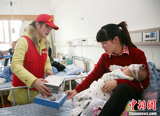 2月13日,浙江杭州一批由企业员工、爱心民众等组成的志愿者团携带1200份礼物,来到浙江大学医学院附属儿童医院,为除夕夜仍然需要住院、春节无法回家的小朋友送上新年礼物和节日祝福。中新社发 李晨韵 摄