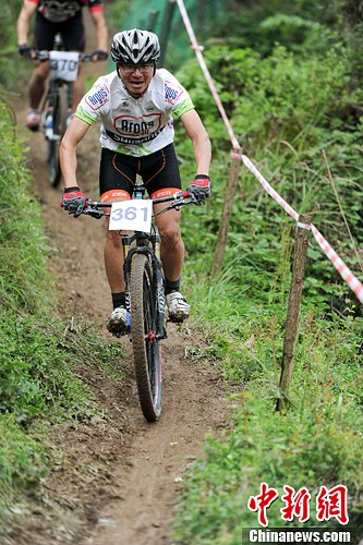 4月11日,2015中国贵州福泉古城山地自行车赛在福泉市举行,吸引全国19个省市614名山地车运动员参加。本赛事已连续举办五年,赛道为国内山地自行车比赛A级赛道。中新社发 贺俊怡 摄