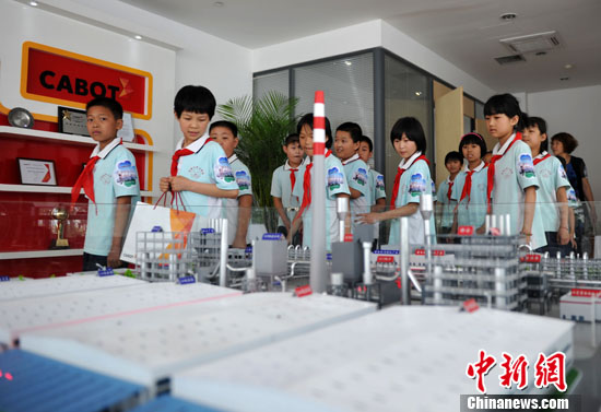 6月2日,在世界环境日即将来临之际,河北邢台当地二十余名中小学生走进全球炭黑巨头卡博特公司邢台工厂参观,在工作人员的介绍下感受低碳环保。 中新社发 翟羽佳 摄