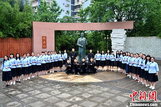 学生们身穿民国服装合影留念。张骥 摄