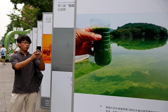 6月25日,以“低碳,让生活回归本色”为主题,中国新闻社《中国新闻周刊》主办的第六届“低碳发展·绿色生活”公益展在北京王府井步行街举行。图为市民参观公益展。中新社发 韩海丹 摄