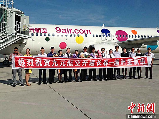 6月25日下午14:55,中国低成本航空公司——九元航空的AQ1031航班顺利抵达满洲里西郊机场,标志着广州和南京经长春同机中转至满洲里的航线正式通航。中新社发 郭军 摄